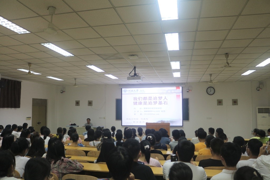 9月14日晚,mg4355vip检测中心在综合楼109教室举行2020级本科新生健康教育讲座,并邀请明伦校区健康管理科主任祖强担任主讲人。